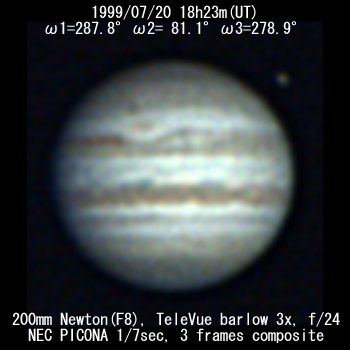 ![]() No. 4 1999/07/20 18:11:18(UT) I=280.8 II= 74.2 III=272.0 De= +3.3 E.Dia=39.83" |