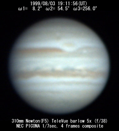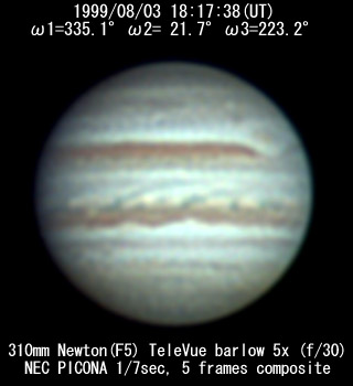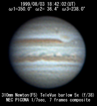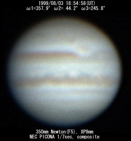 No. 2 1999/08/03 19h48m(UT) I= 30.2 II= 76.3 III=277.8 350mm Schmidt-Cassegrain BITRAN BJ-30L, DR655 filter, 1/16sec