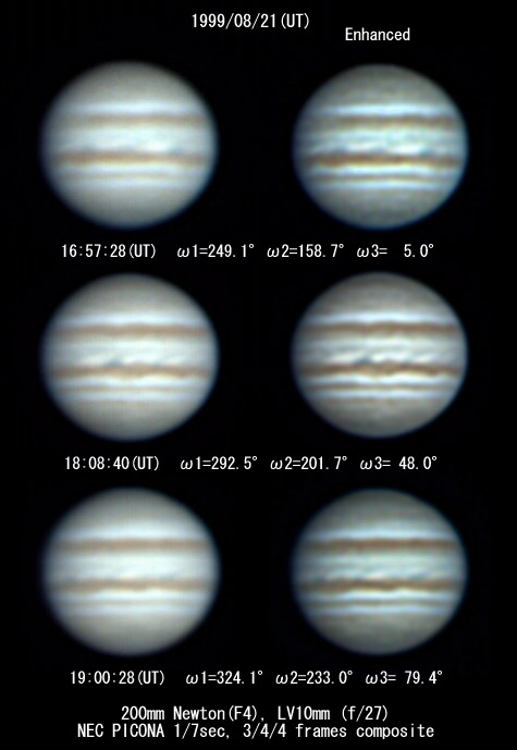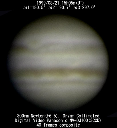 ![]() No. 15 1999/08/21 15h05m(UT) I=180.5 II= 90.7 III=297.0 40 frames composite |