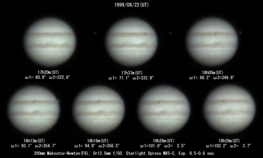 No. 5 1999/08/22 19h35m(UT) I=143.1 II= 44.2 III=250.8 350mm Schmidt-Cassegrain, Or18mm BITRAN BJ-30L, DR655 filter, 1/8sec