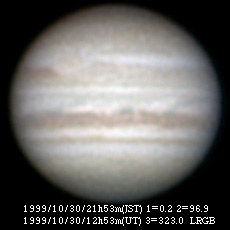 ![]() 1999/10/30 12h53m(UT) I= 0.2 II= 96.9 III=323.0