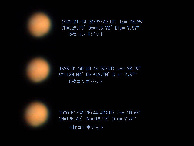 1999/01/30 20:37:42(UT) CM=128.73゜6枚コンポジット