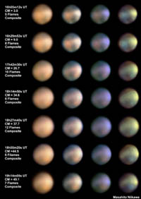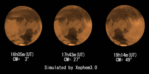 赤道雲が青く写っている一方で、テムぺが、いやに赤く写っています。この色が本当の地肌なのでしょうか??(4月4日)