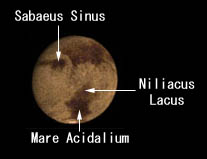 - The southen area of SIMUS SABAEUS and the area of TEMPE are bright in red color.