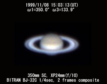 1999/11/08 14:34:30(UT) CM1=350.0 CM3=133.9 300mm Schmidt-Cassegrain, XP24mm(f/30) BITRAN BJ-32C, 1/4sec 2 frames composite