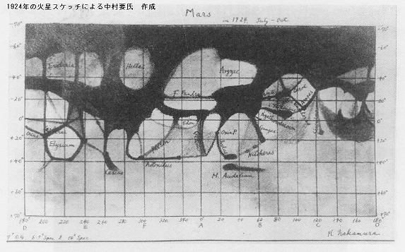 中村要氏が製作した火星全図(1924年山本一清写真帖)