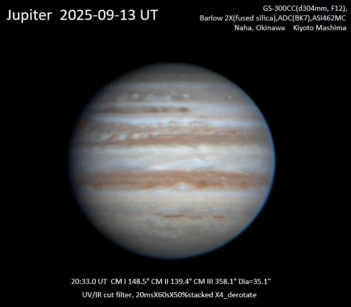低空の雲で木星が見えず、移動するまで30分掛かった。気流は並、高度が上がると少し良くなった。GRS後方の位相。≪Cebu PHILLIPINES 阿久津富夫≫