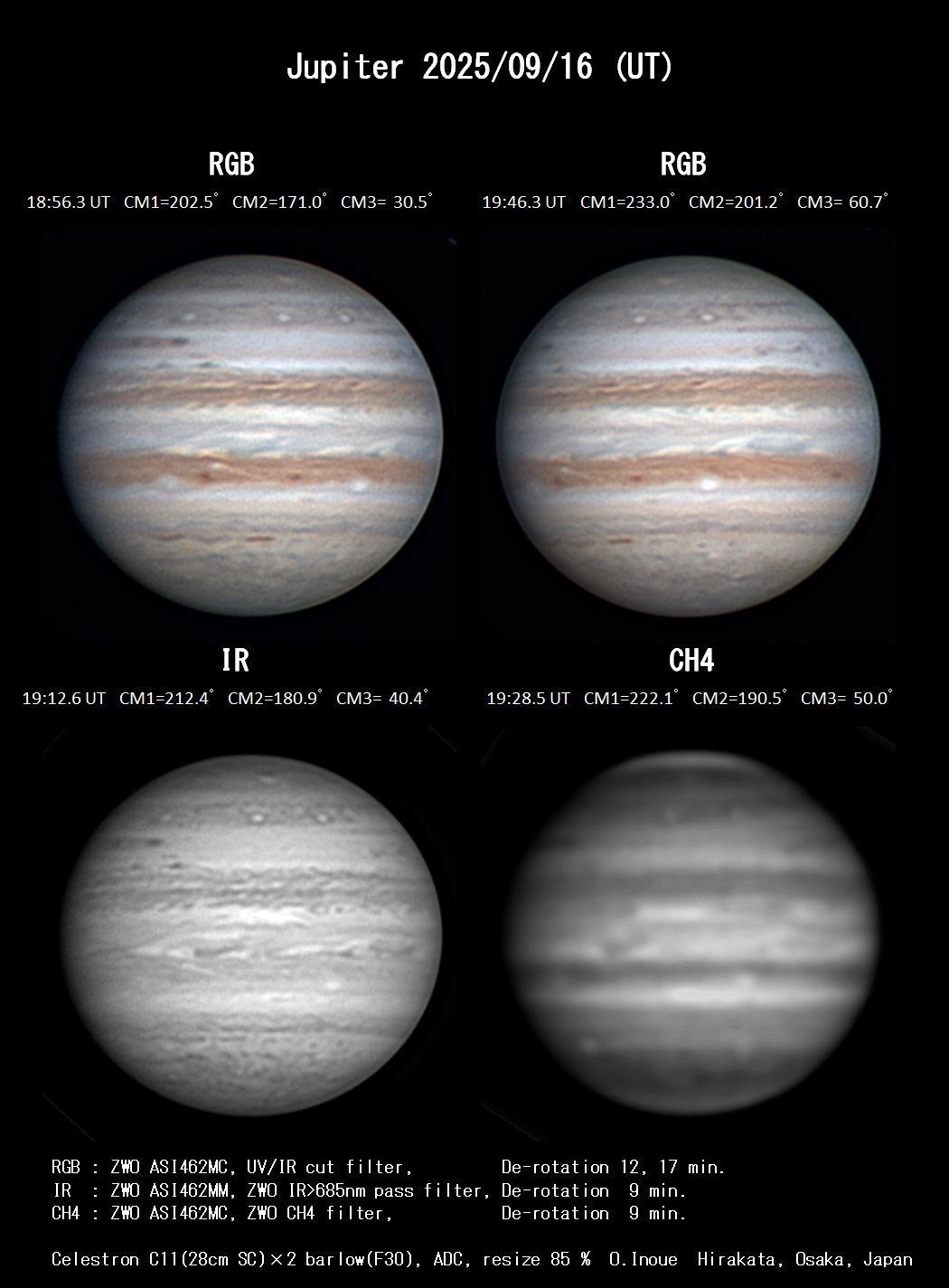曇の予想が17時半(UT)頃、外に出ると晴れていたので、慌ててドームを開け導入したが雲が拡がって5コマを撮像した後、