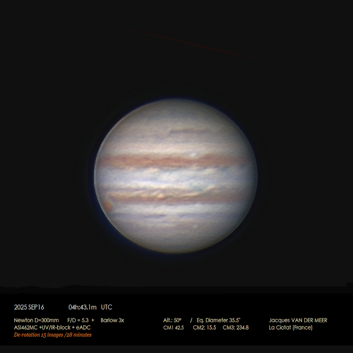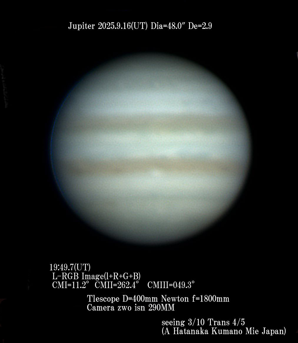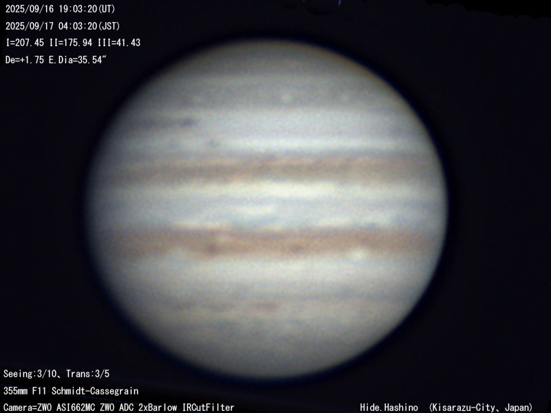 一週間ぶりの木星で、大赤斑後方の領域です。