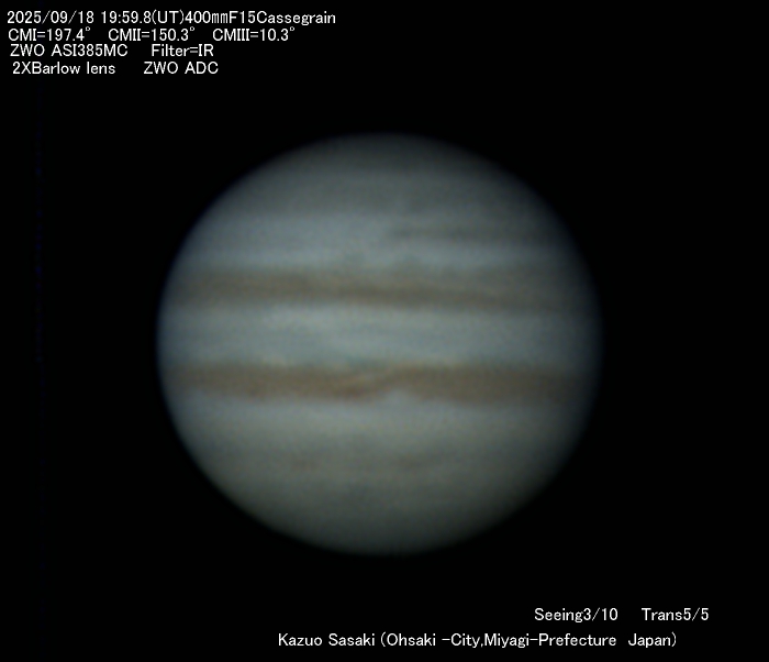 2週間ぶりに木星が見えましたが残念なことに気流はすでに冬バージョンでした