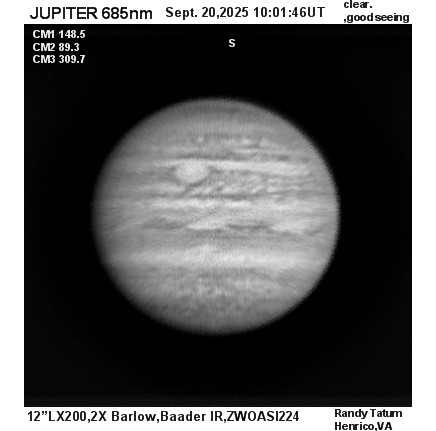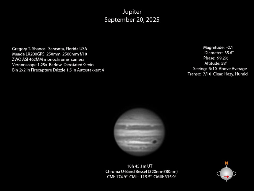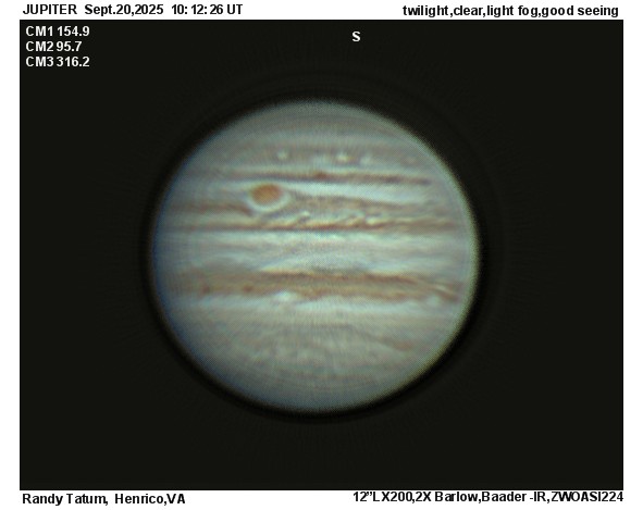 Clear, slight haze and humid. Above average seeing. Jupiter in methane and ultraviolet came out nice.