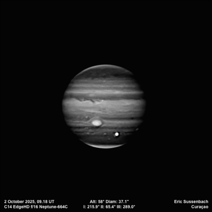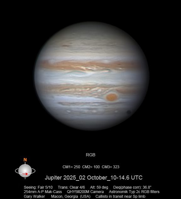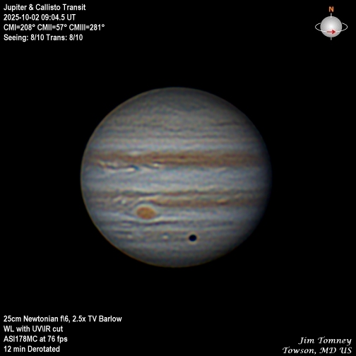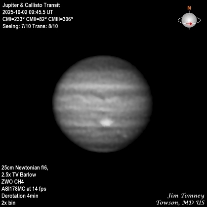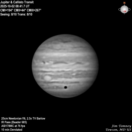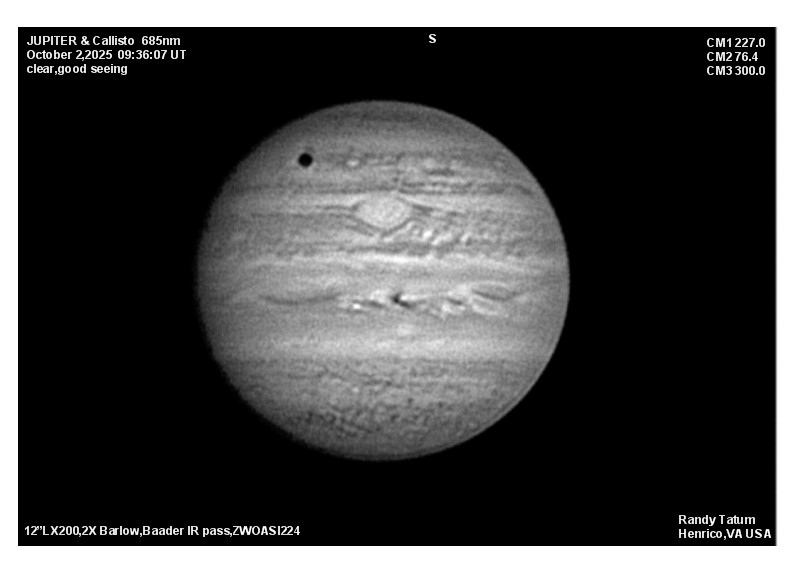 and Callisto is nearing the end of transit near the south preceding limb. Seeing was fair but not optimal.