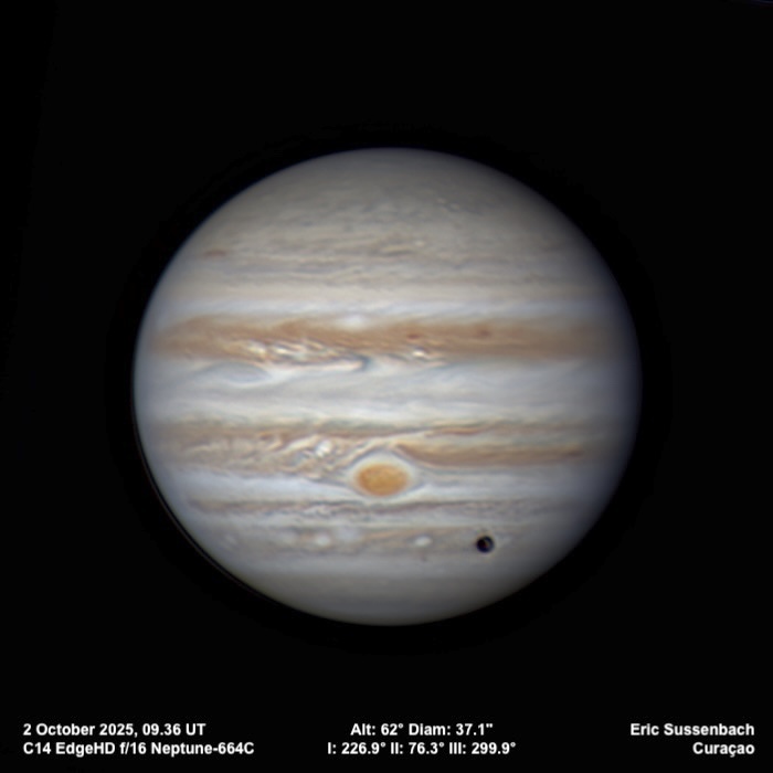 Callisto transiting the planet - quite a testimony to how dark an albedo it has compared to Jove.