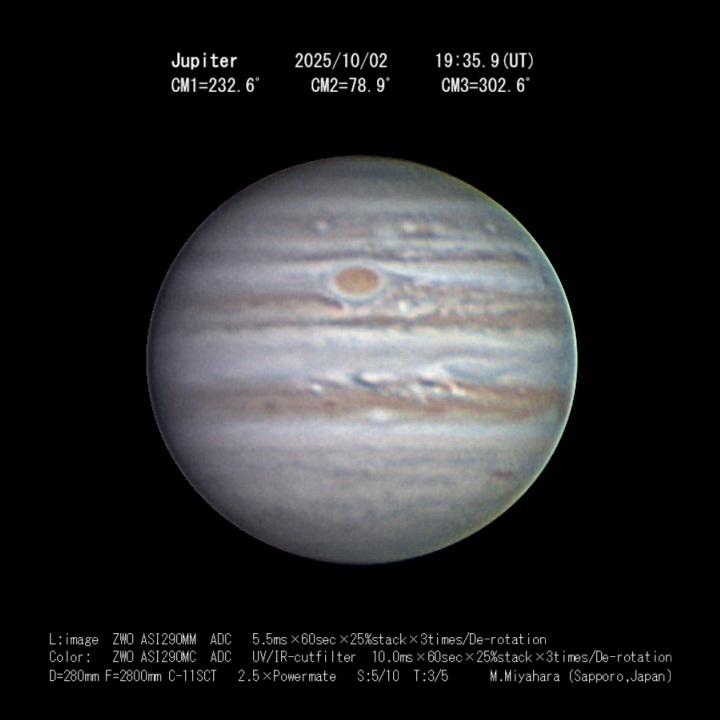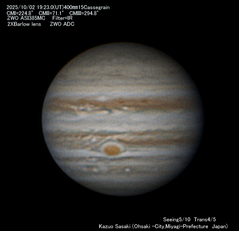 高層気流予報の状態は良くなかったのですが、大赤斑が見える時間帯なので無理を承知の上で撮像を実施してみました。