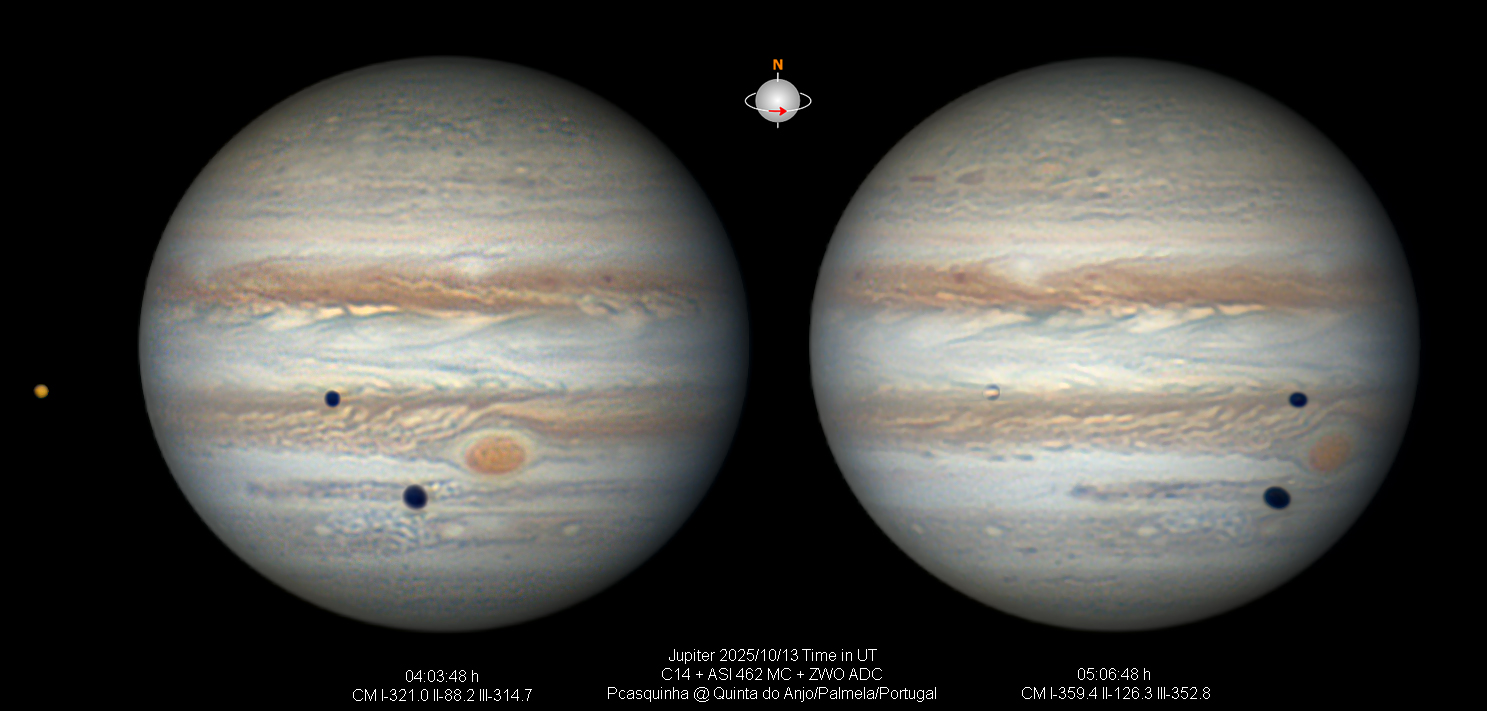 Jupiter observations from October 13,2025 in Schiltigheim (FR) with good conditions.