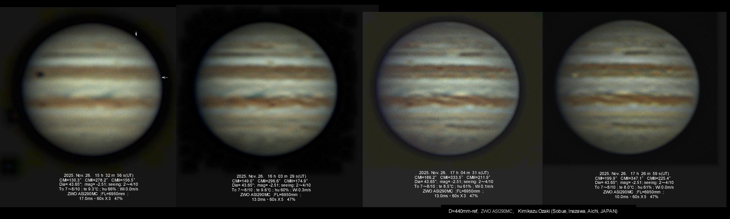 エウロパの影が経過中でしたが、最初見たときはイオの影かと思いました。