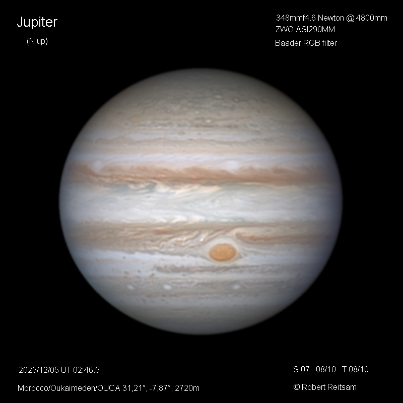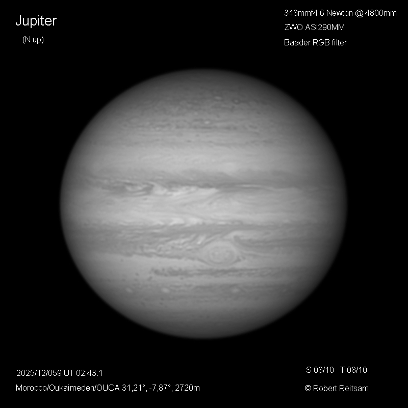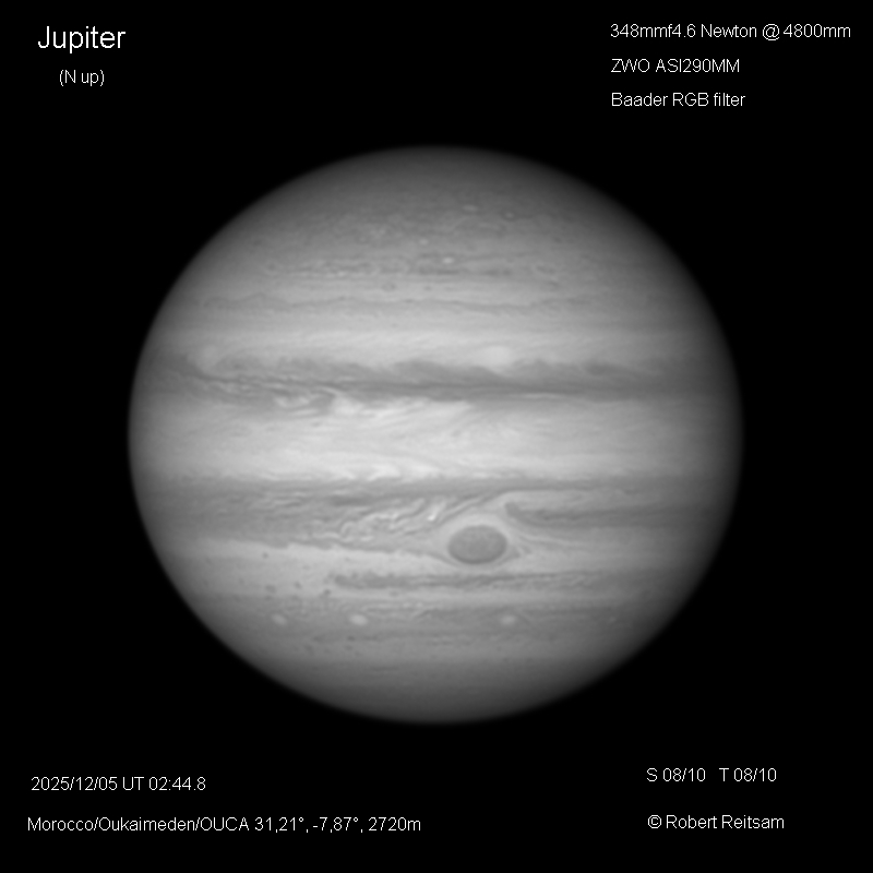 Attached are my latest Jupiter images,taken last night in rather poor seeing conditions.
