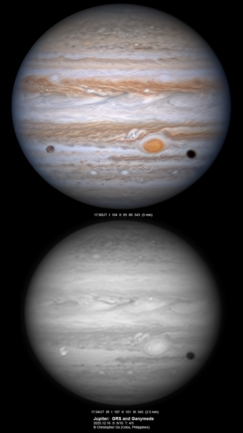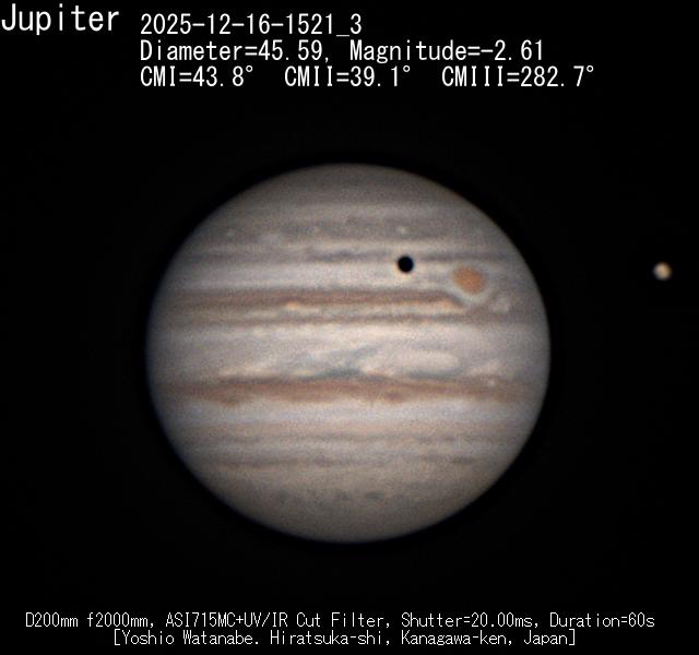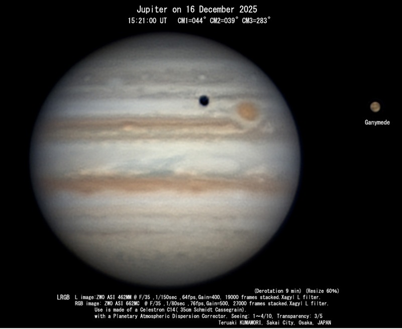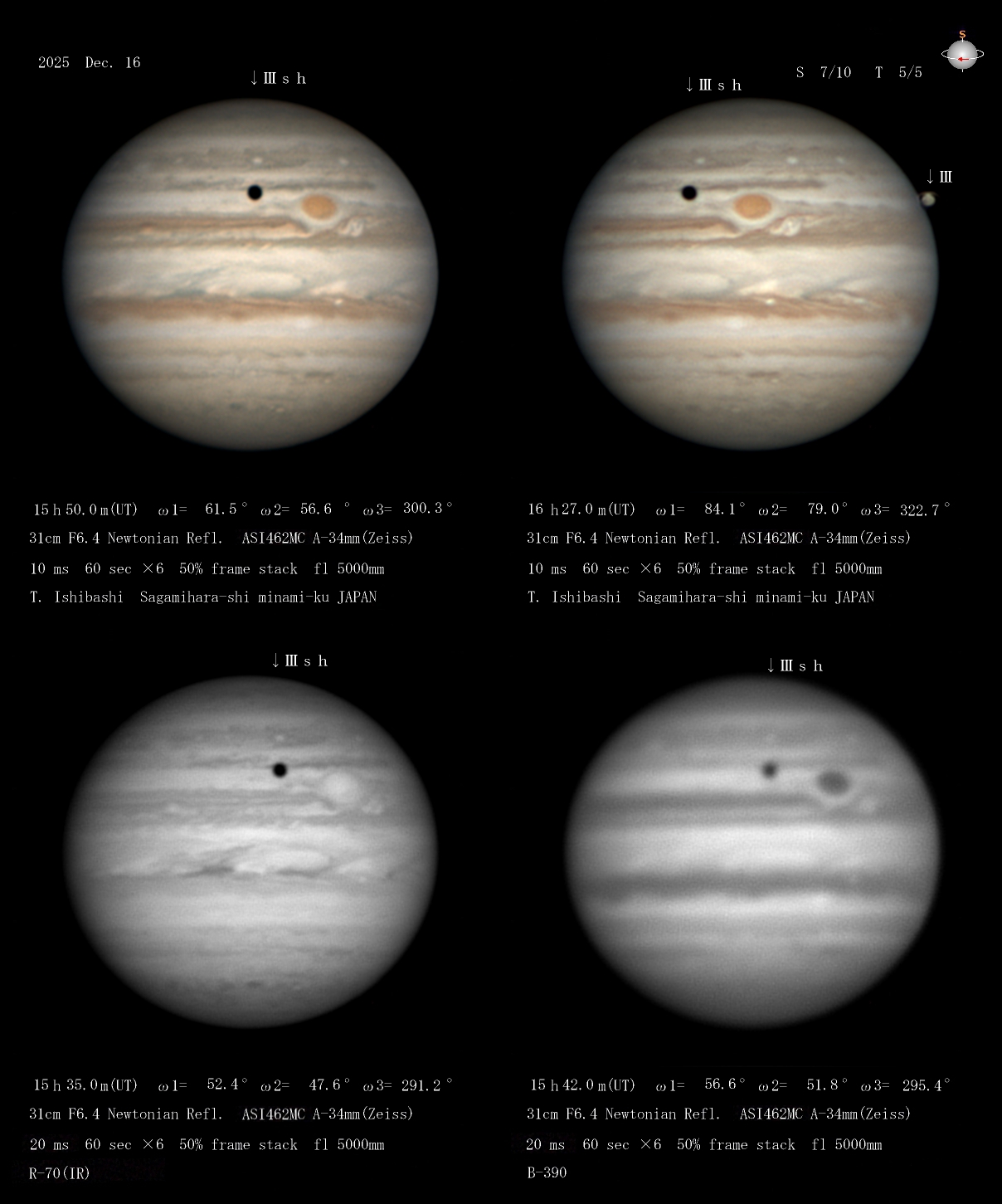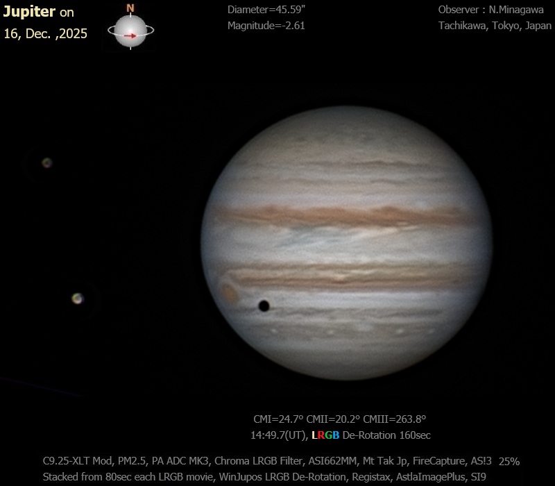 夜半過ぎからシーイングが安定してきました。ガニメデの接近とガニメデの影、遠ざかるカリストと一緒に撮影できました