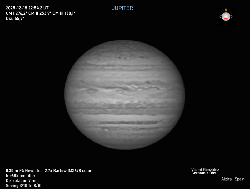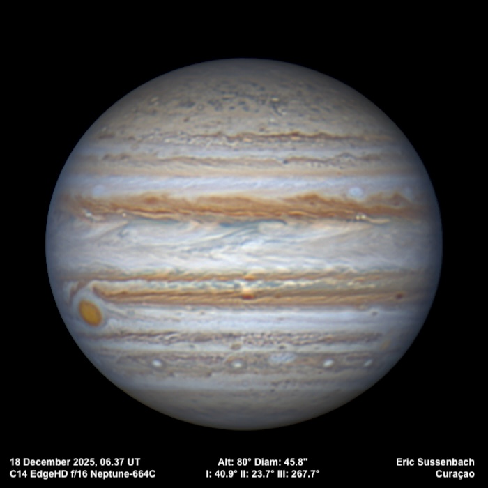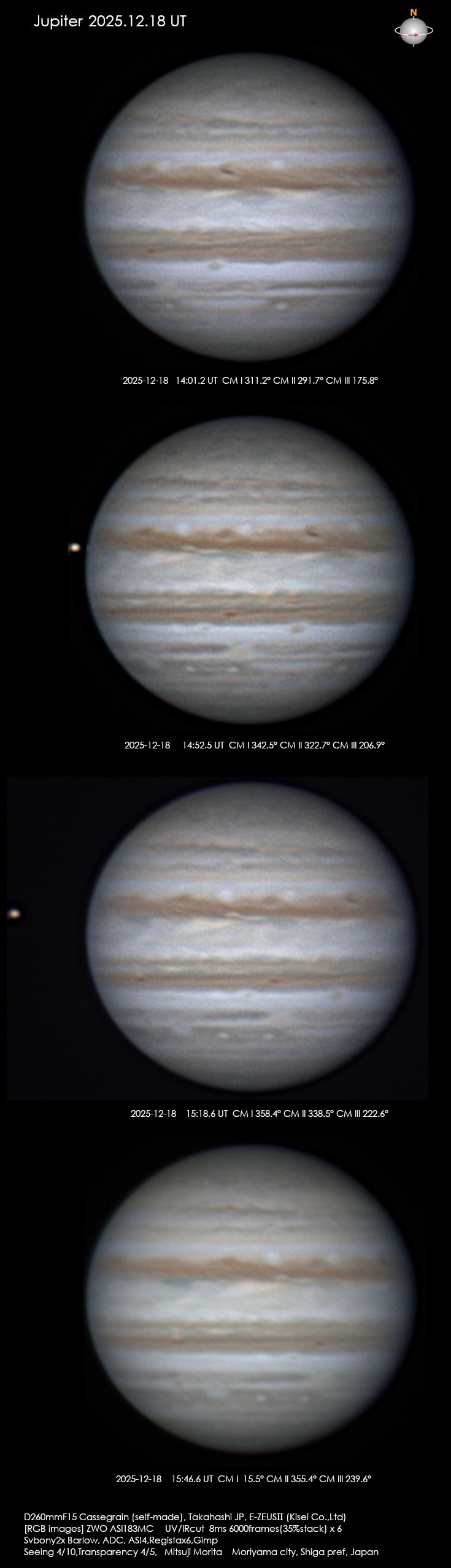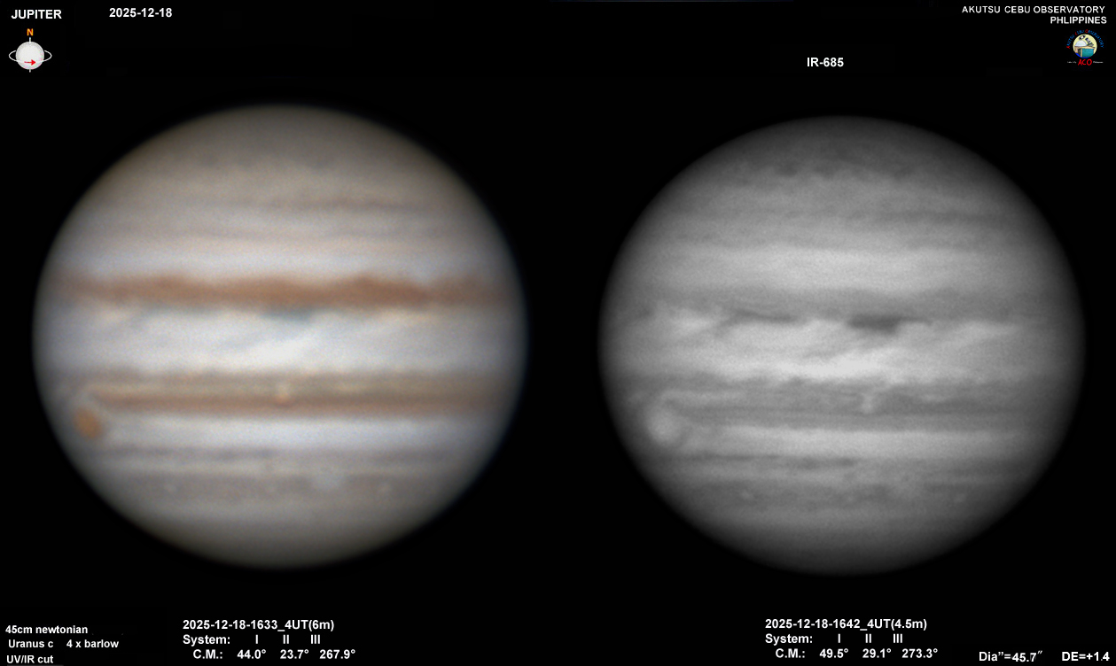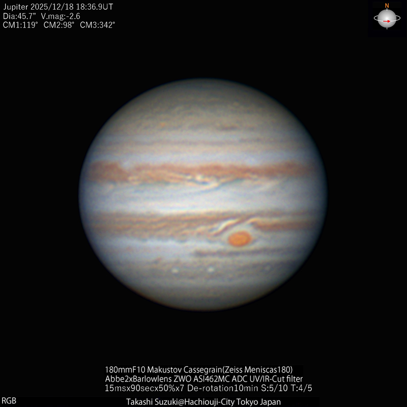 大赤斑は少し淡いものの、輪郭くっきりです。NTrZの白斑は大赤斑の前方に出ました。