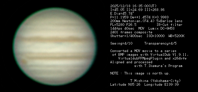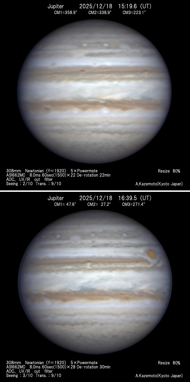 シーイングが良く、大赤斑もやってきたので、2枚取ってしまいました。