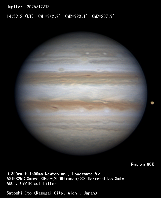 やや不安定な気流でシーイングは改善しません。衛星はイオです
