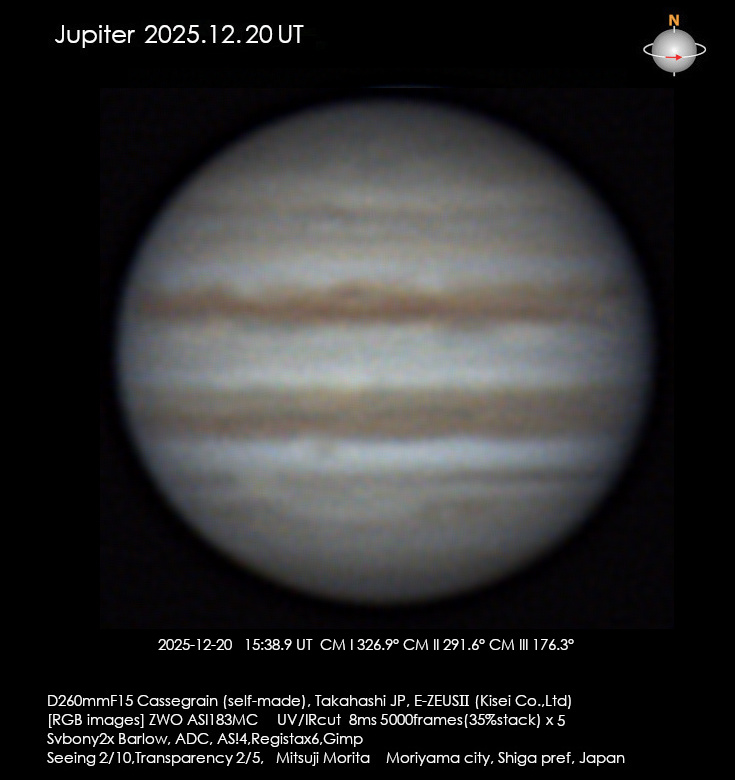 いつ曇るか分からない状態で普段より早い時刻に撮影を始めましたが、シーイングが酷い上に何度も雲の通過に邪魔され、