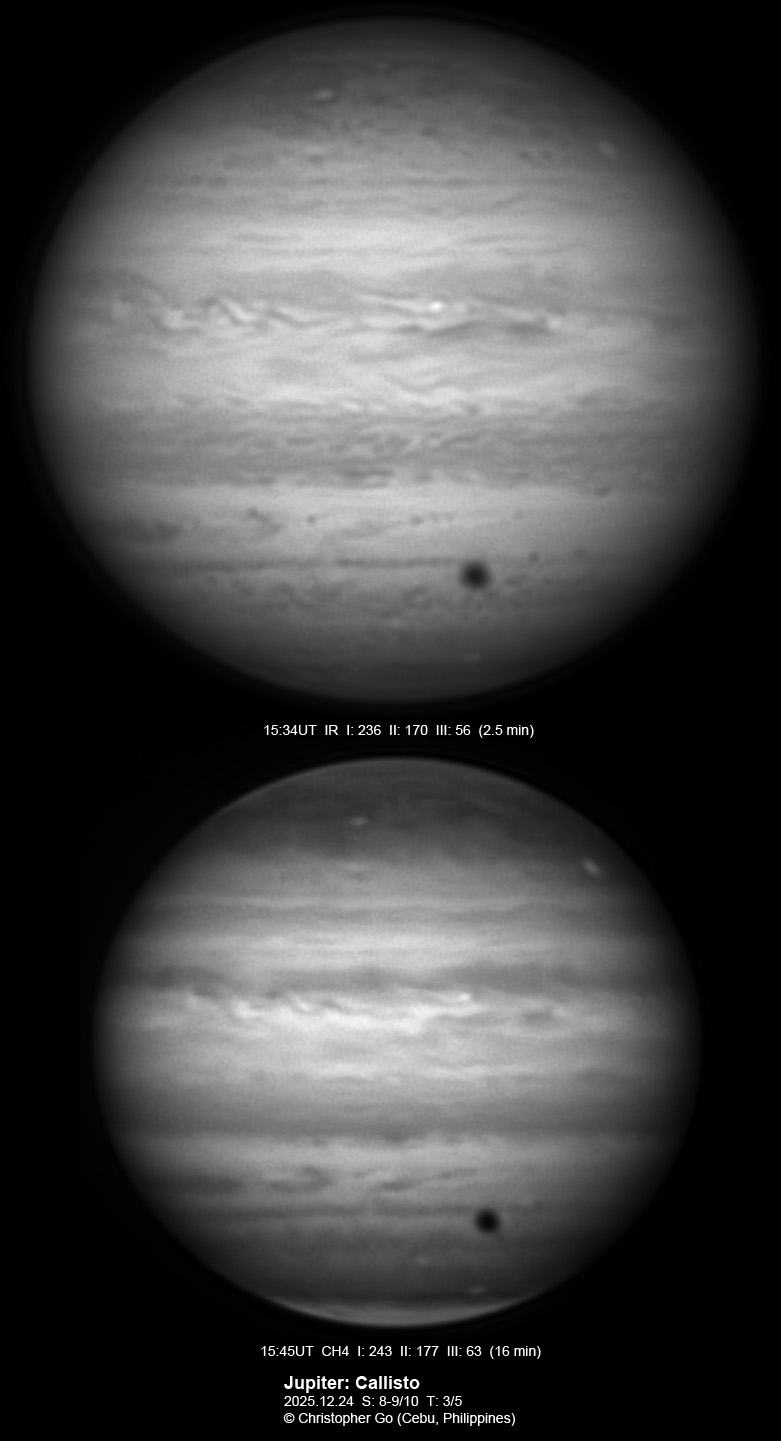 Callisto's shadow is in transit. It is interesting to see that it's shadow has a penumbra!