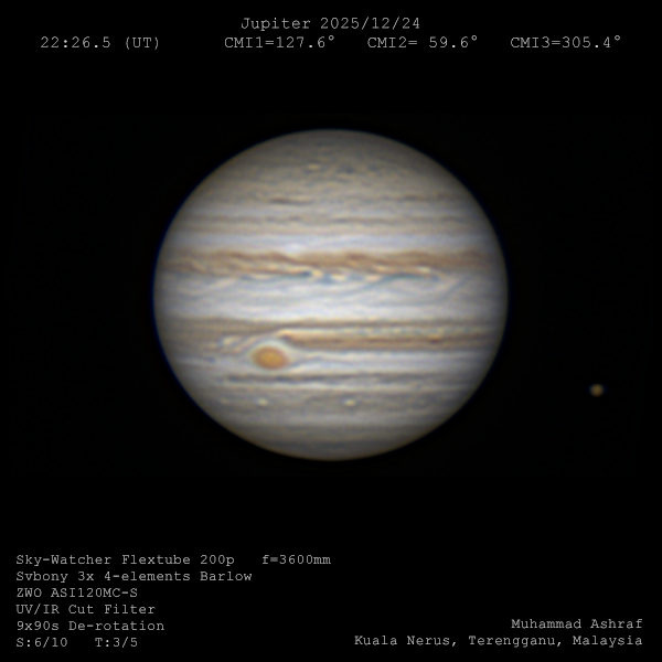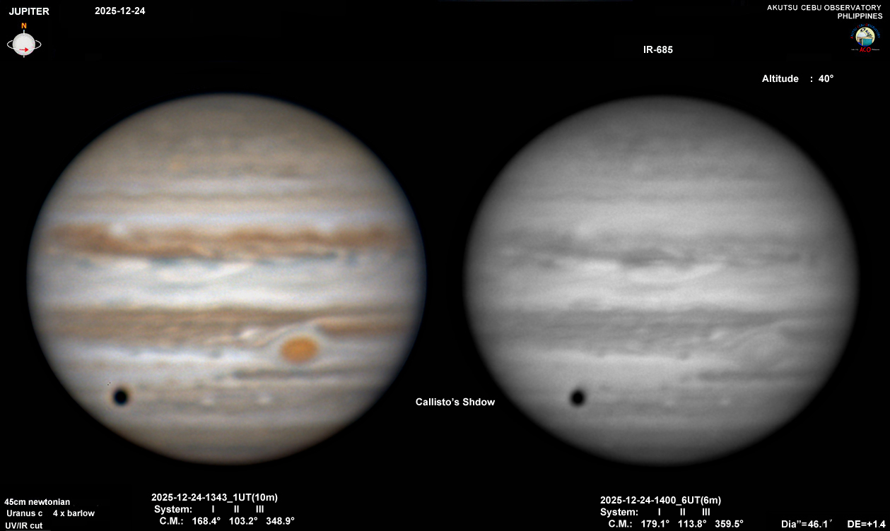 GRSが低空で見えていたが高度が低く、イメージは良くない。高度が上って少し気流が改善しCallisto,Ioの経過が見られた。