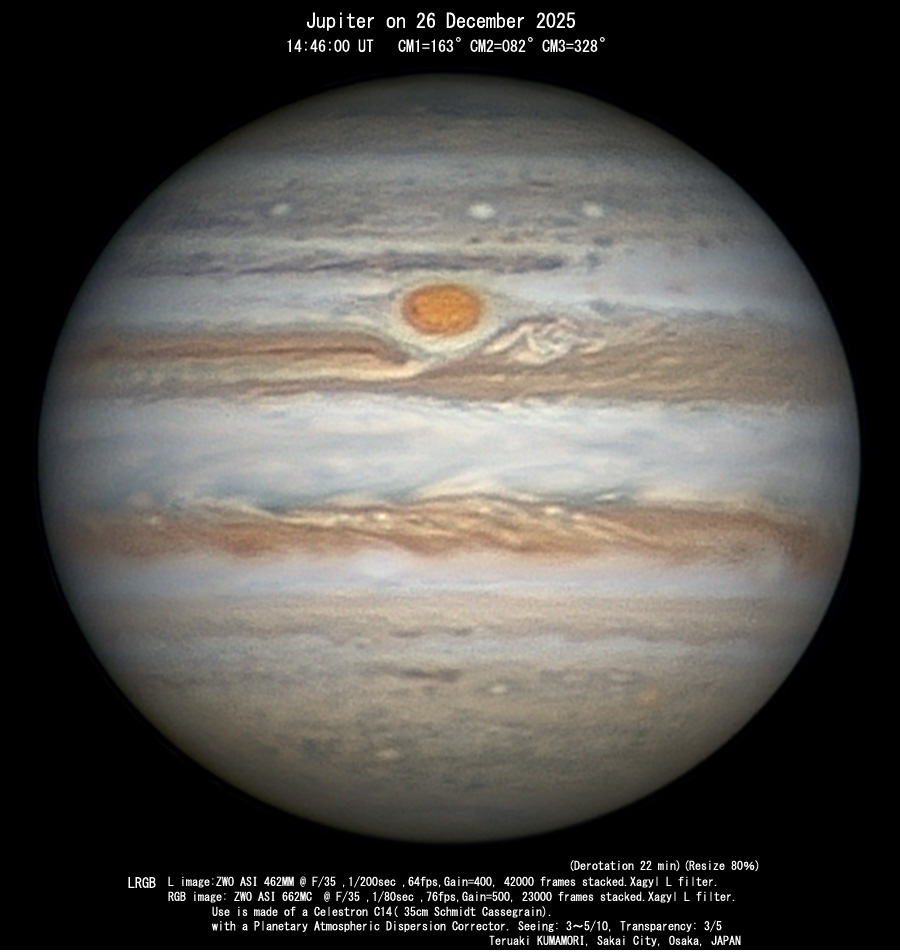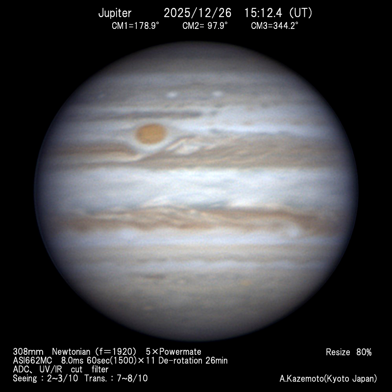 大赤斑の前後です。後方のSEBには新しい白斑が出たようですが、