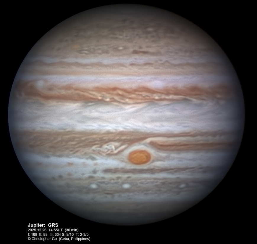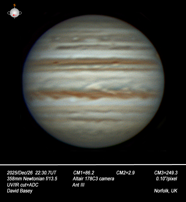 The GRS is prominent in this image. The "chimney" above the GRS seem to be closing.