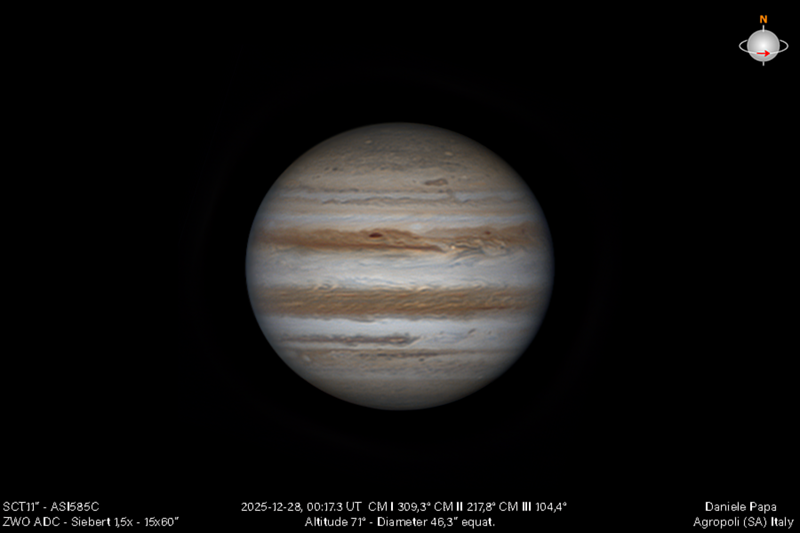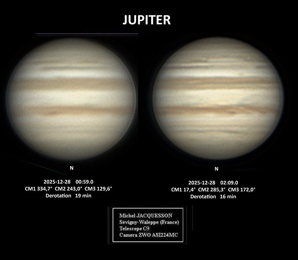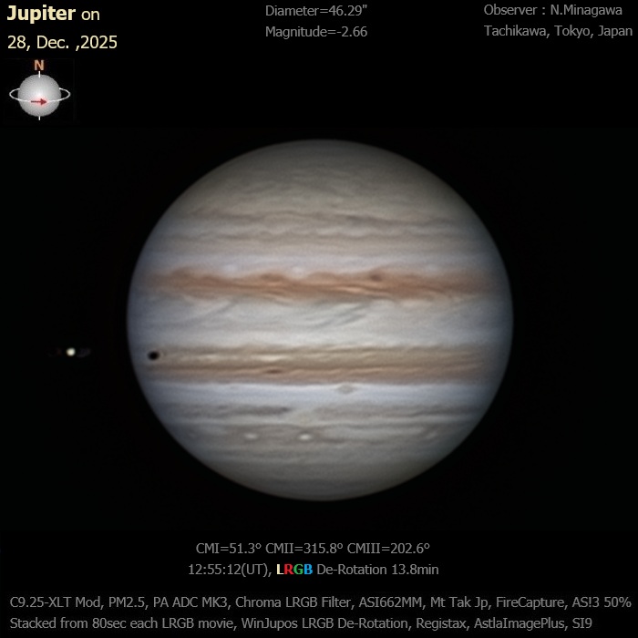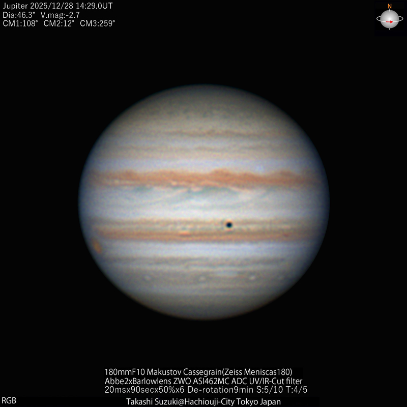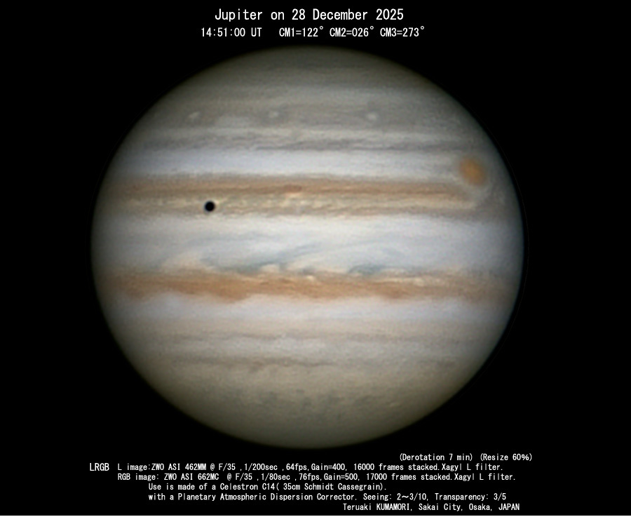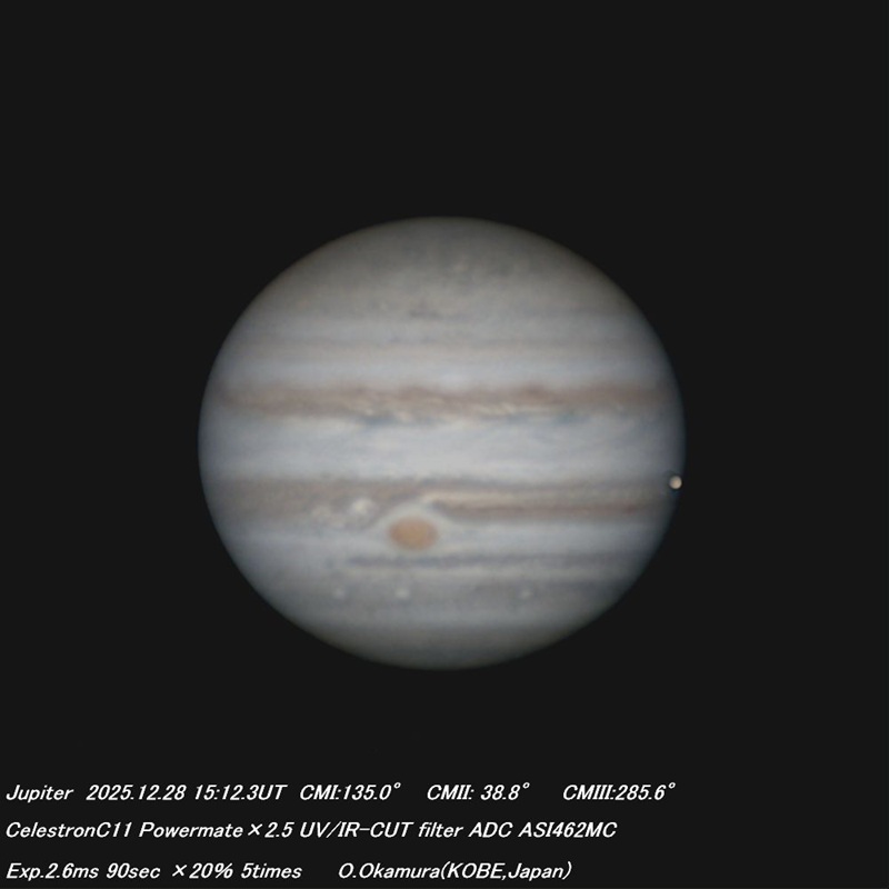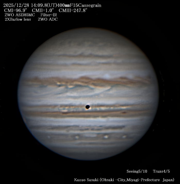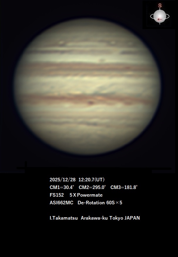 冬にしては良いシーイングでした。東端から大赤斑が姿を見せています。
