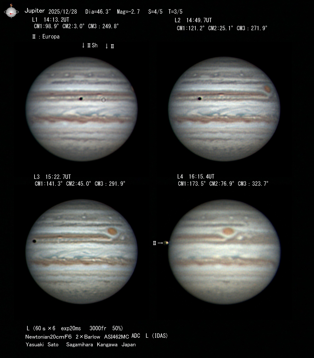 シーイング、透明度ともに今一つ不安定でした。エウロパが影を落としています