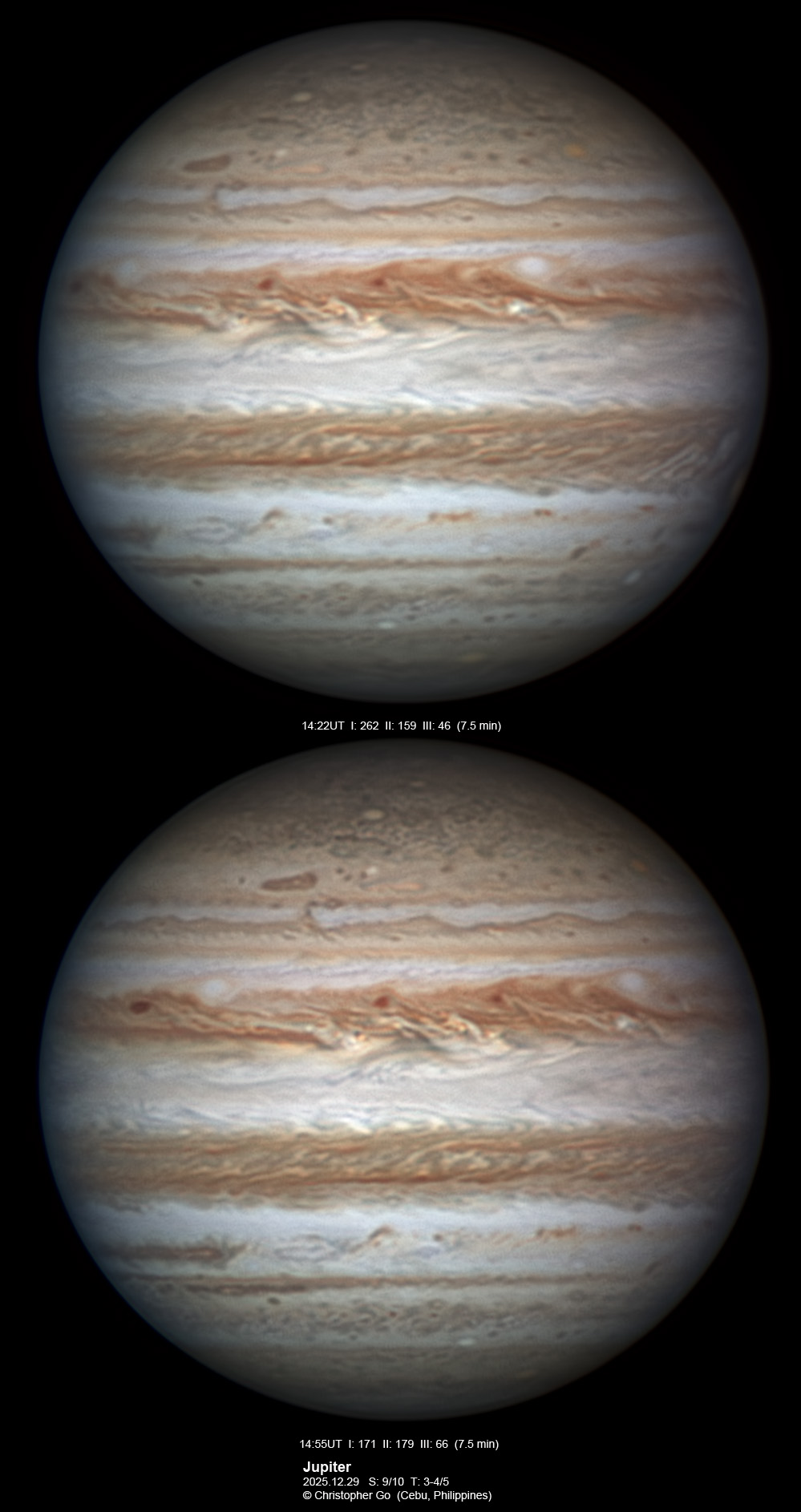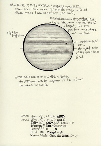 大赤斑後方のSEBはわずかに明るく見えますが、徐々に南へ押し上げられているように感じます。