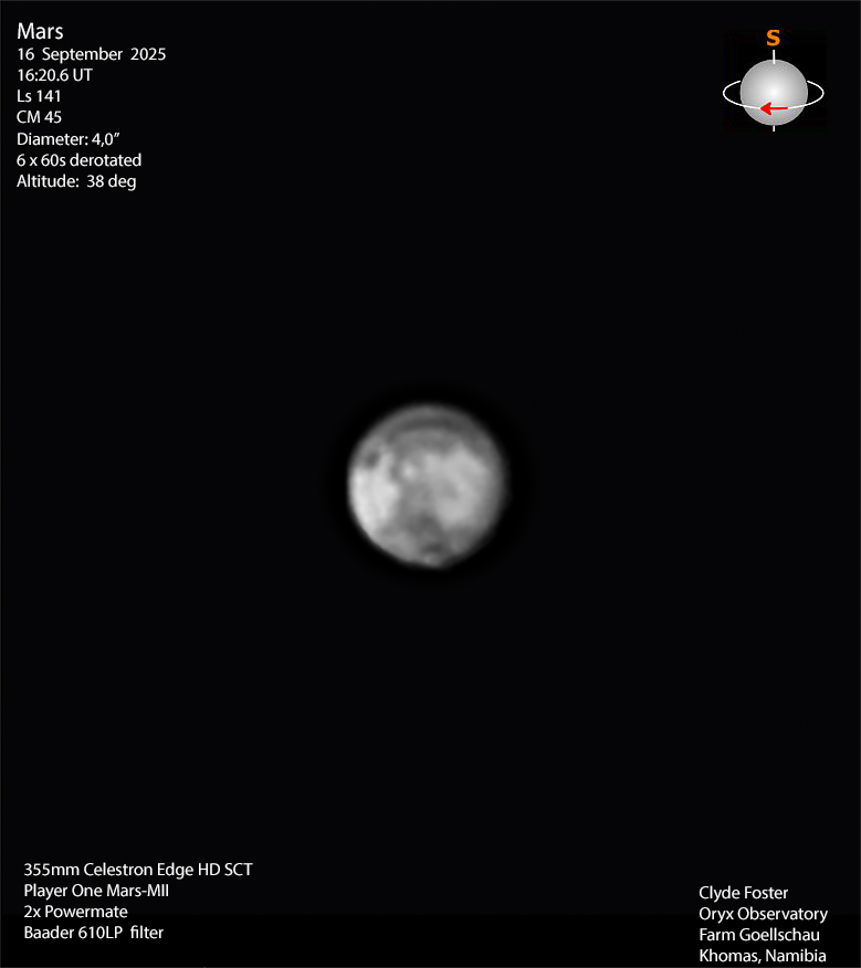 Niliacus Lacus is central with Mare Acidalium extending below it. Margaritifer/Indus are quite obvious. Hydospes is also noted.