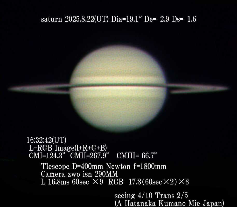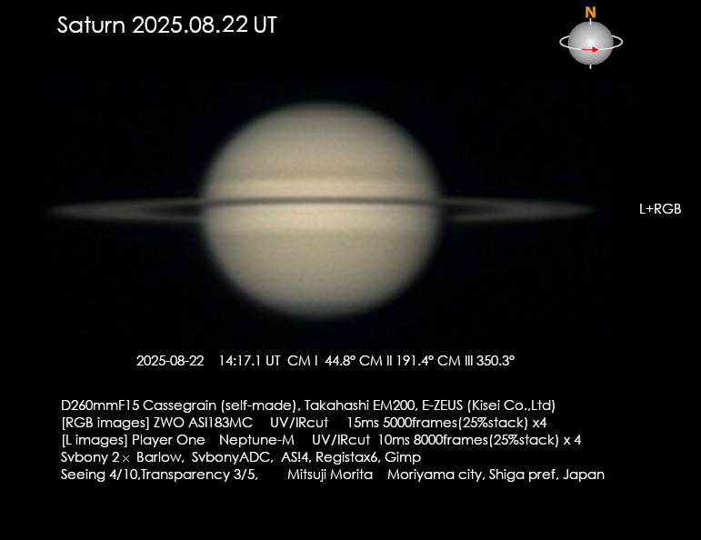 I've finally got to process some old images of the ringed planet, this time from a poor seeing session from August 22.