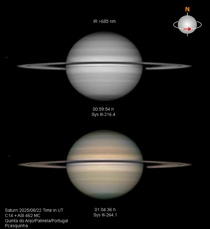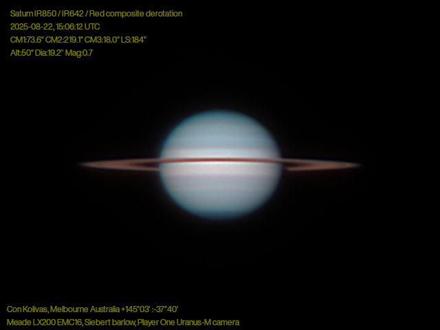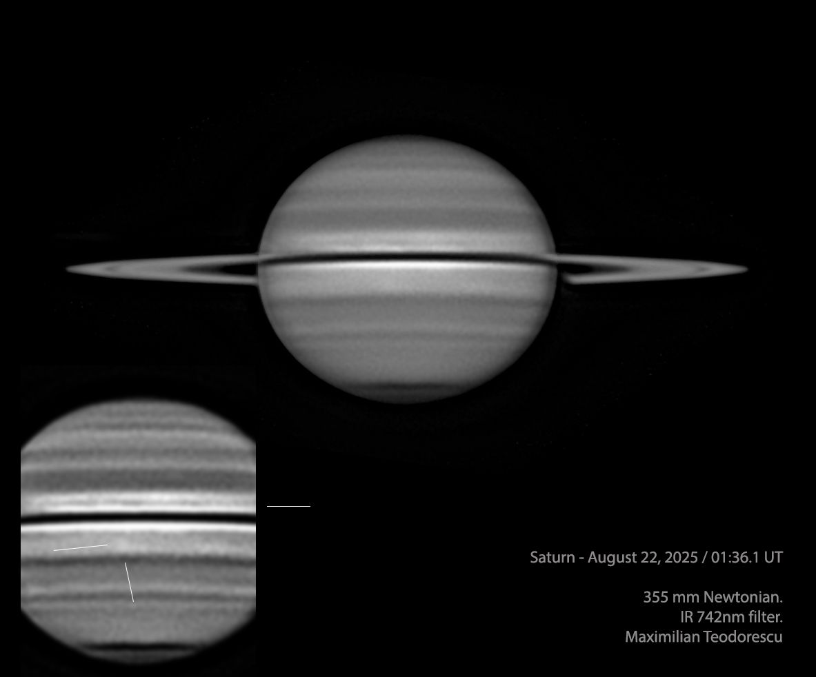 The IR data shows some interesting details, as in the equatorial belt and a big but very diffuse spot. The animation shows the details while the planet rotates.