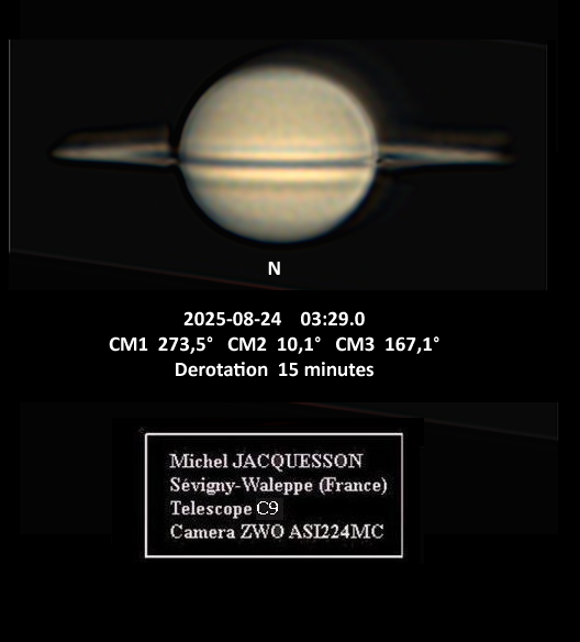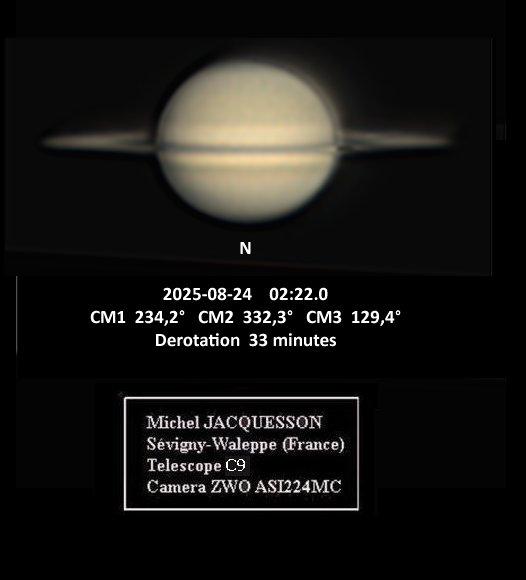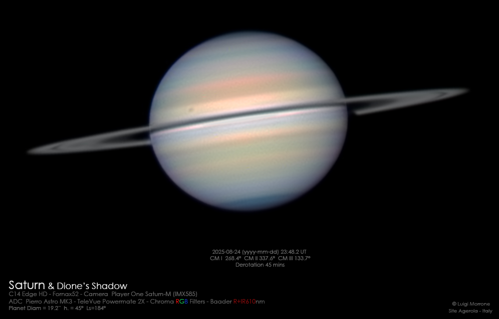Under/average good seeing conditions. RGBx5 sets@60sec each filter,L=R+IRx30ssts @60sec Dione 's Shadow can be seen on the disk[Luigi Morrone : City Agerola Italy]