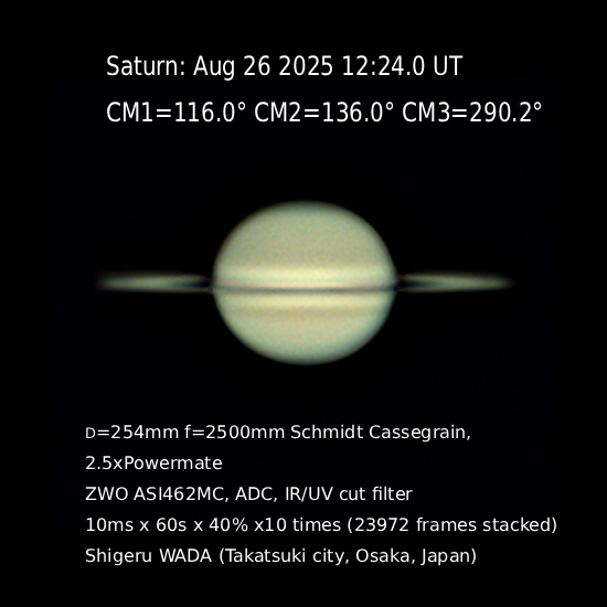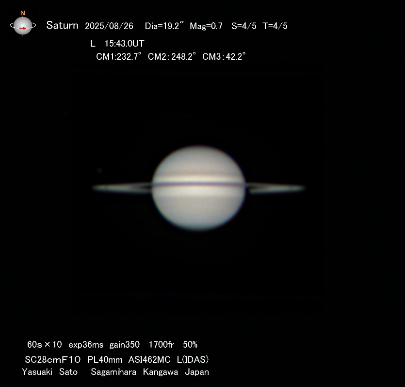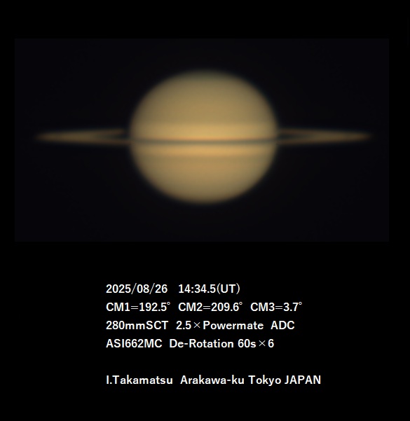 前回8月15日(JST)の木星撮影以降、望遠鏡の不調(操作不能)でしばらく撮影ができなかったが、