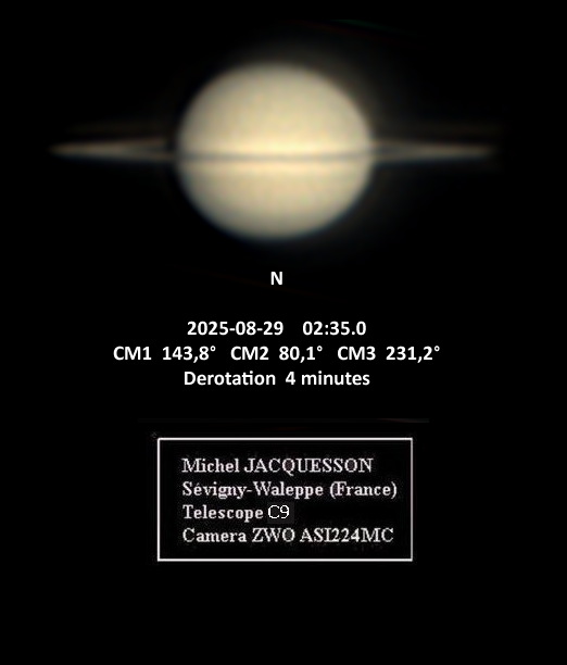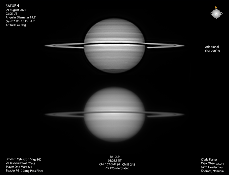 In the R610LP additionally sharpened image,the light oval in the south is well seen,together with a long,thin streak in the SEB.