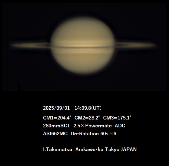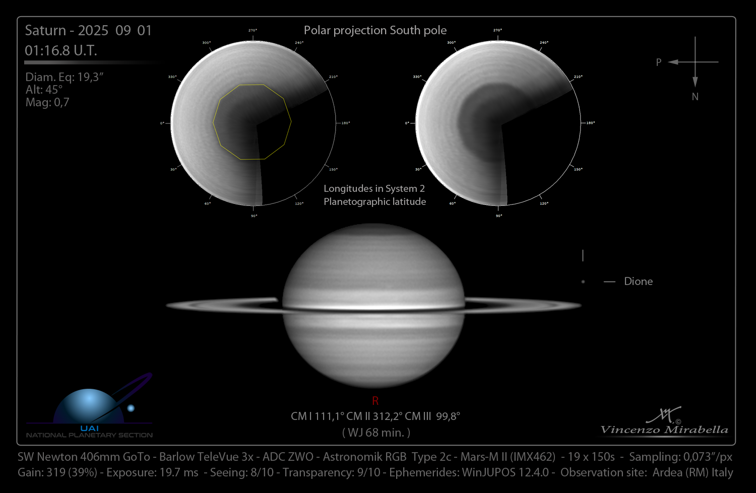 SSTBとさらに南に淡い白斑が二つあります。SPCはこのところ十角形になっているとの報告がありますが、少なくともヘキサゴンとは思えないデコボコな輪郭であるのがなんとなくわかります。