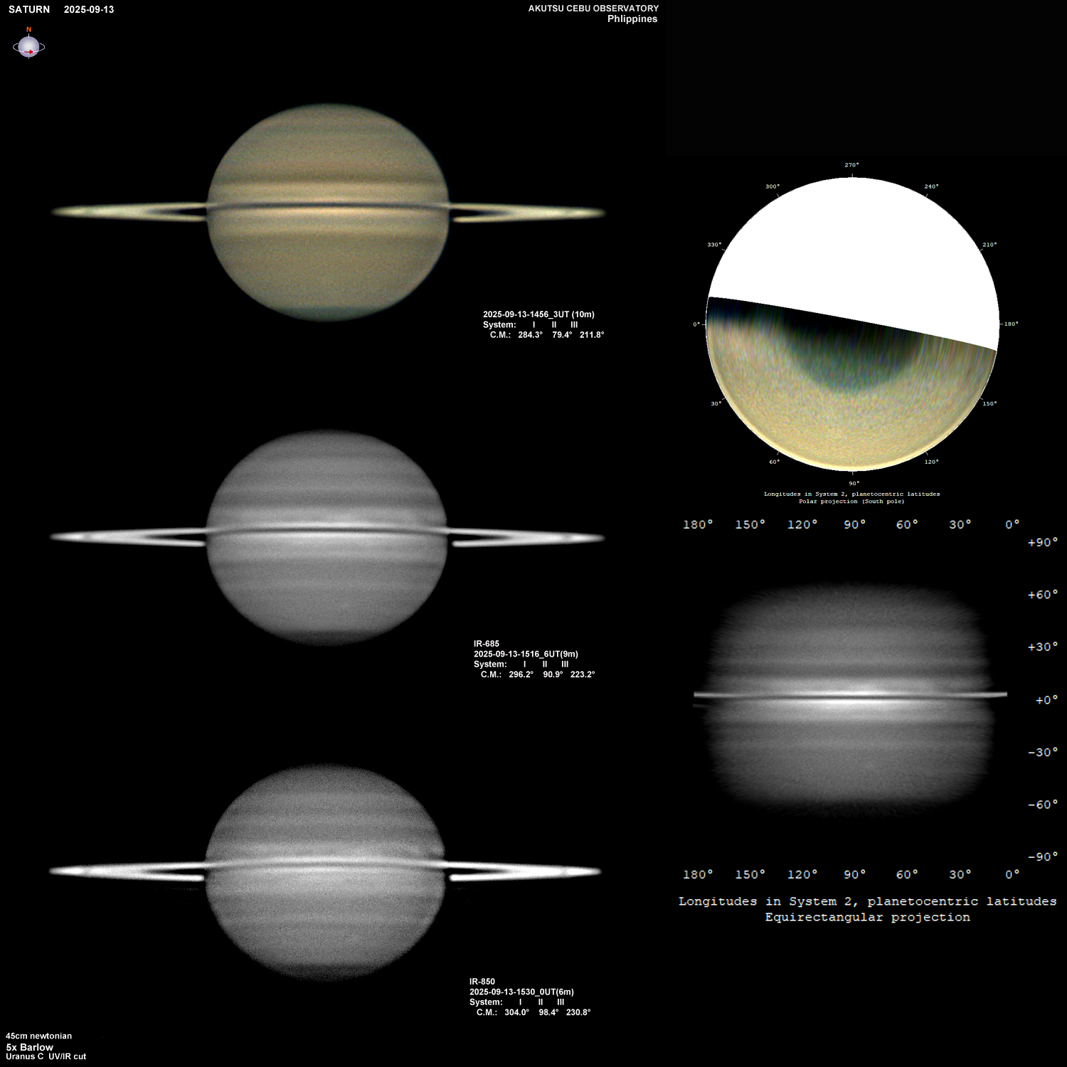 IR 685 nm Saturn GIF from Sept. 13,2025. It is from 02:59 to 03:19 UT.
