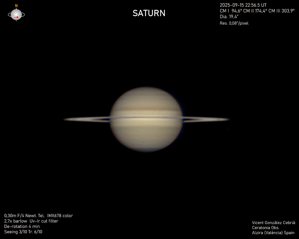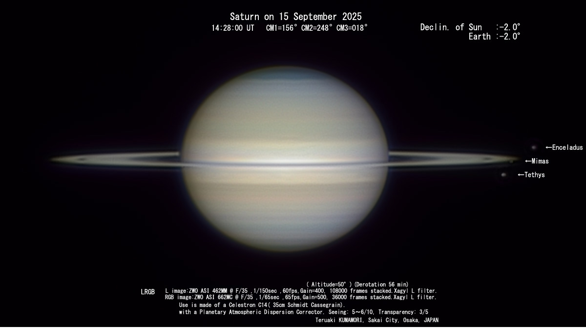 地球から見て環と環の影が重なりました。暗かった環も普通の明るさに戻りました。