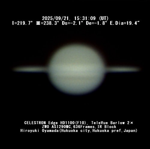 不安定な天候が続いていましたが、久しぶりの撮影でした。一時期よりも環が細くなってきたのがわかりました。