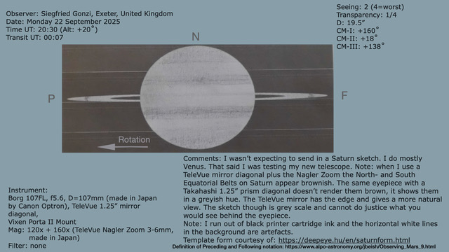 Saturn Image 2025/09/22(UT)