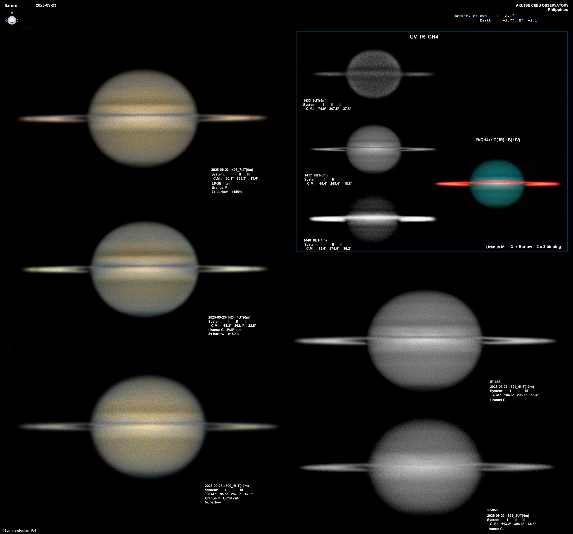 Here is a partial map of Saturn compiled from observations on September 21,22 and 23,2025. All images acquired in near IR (742nm filter). Images used for the map are also shown.