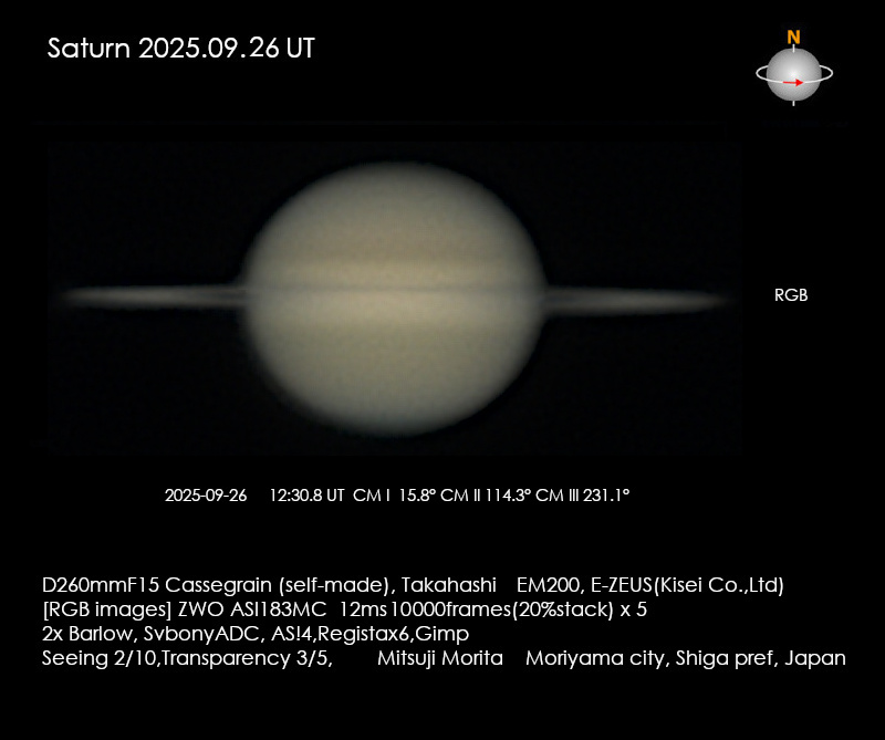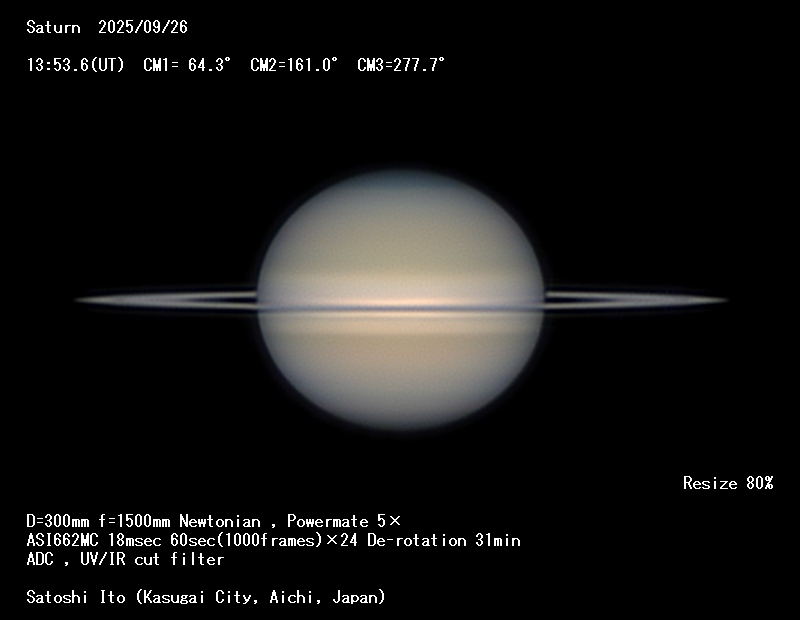 Saturn Image 2025/09/26(UT)