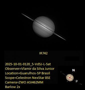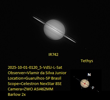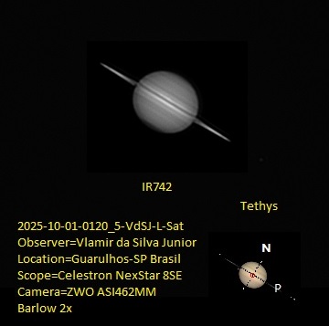 薄雲、気流が悪いのでパッとしません。10月に入り、土星出はが早くなり、午後11時頃には南中します。