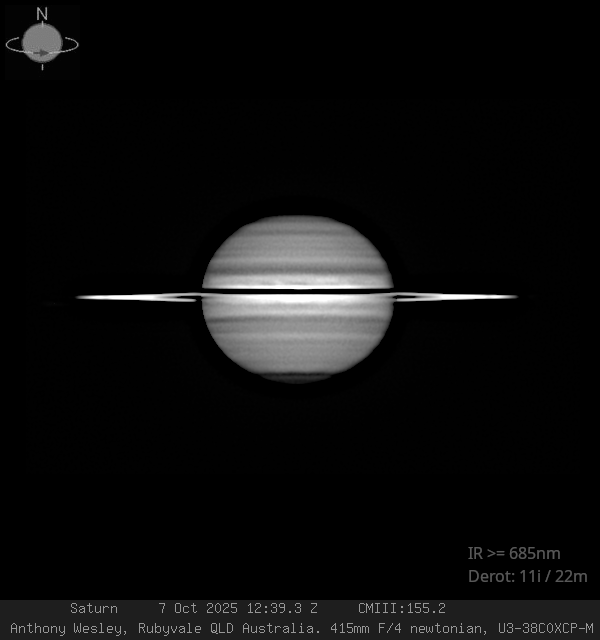 Saturn's White Spot in the southern hemisphere on October 7, 2025 from 3:05 UT to 3:48 UT.[Frank J Melillo Holtsville NY U.S.A]