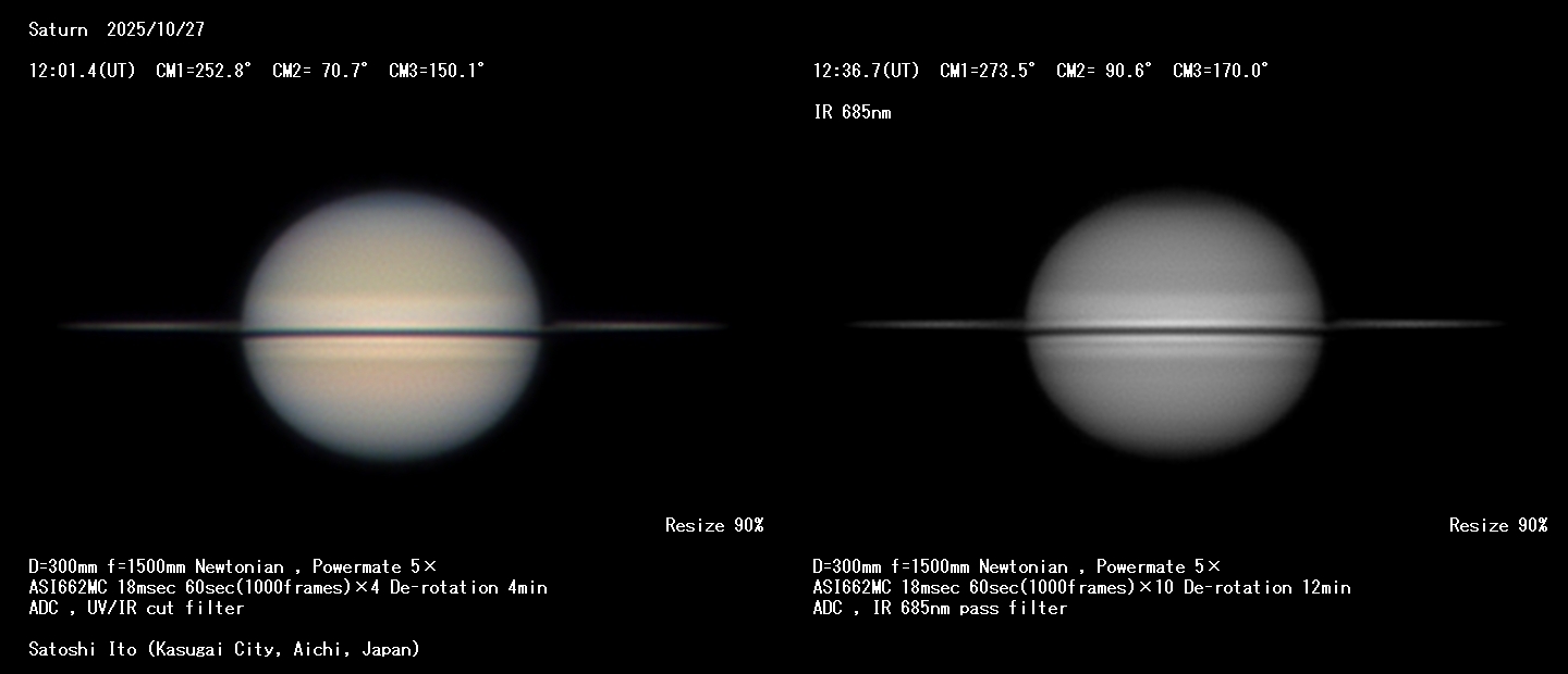 約2週間ぶりで輪が細くなりました。シーイングはよくなく不安定でした。