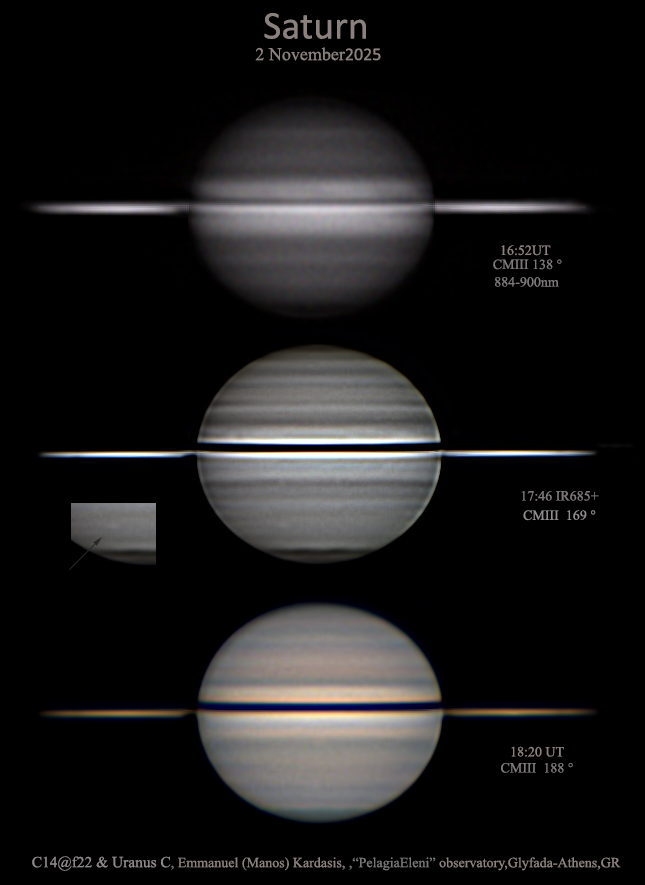 ・EZ: A bright zone with a thin grey EB seen in both regions. The SHRG were visible north of the rings.